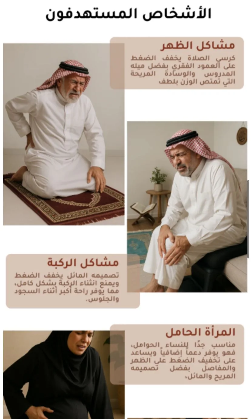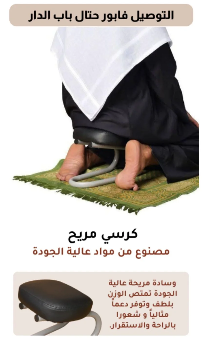 استمتع براحة مثالية أثناء الجلوس أو الصلاة مع الكرسي المريح المصنوع من مواد عالية الجودة، بتصميم ذكي يخفف الضغط على الركبتين والظهر.