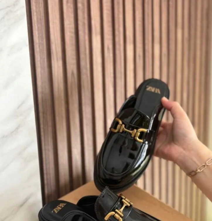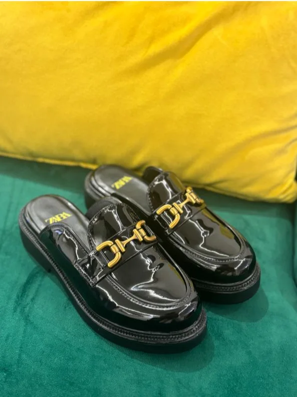 امنحي إطلالتك لمسة من الفخامة مع هذا الحذاء الأسود اللامع من Zara، بتصميم عصري أنيق يناسب جميع المناسبات.